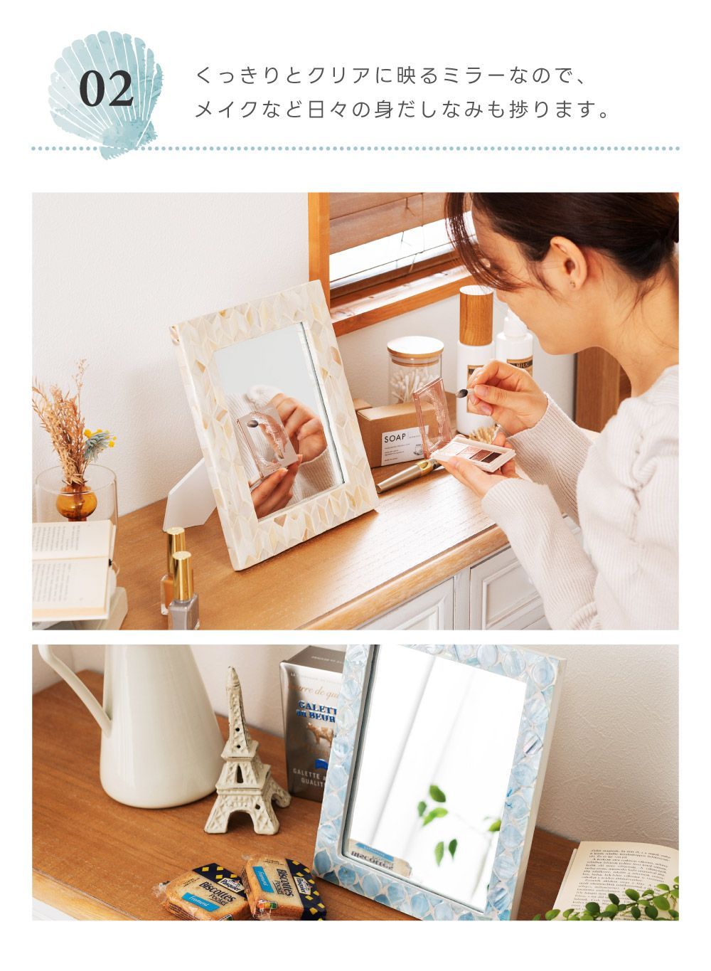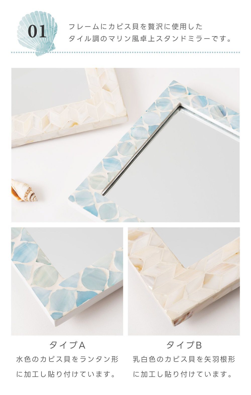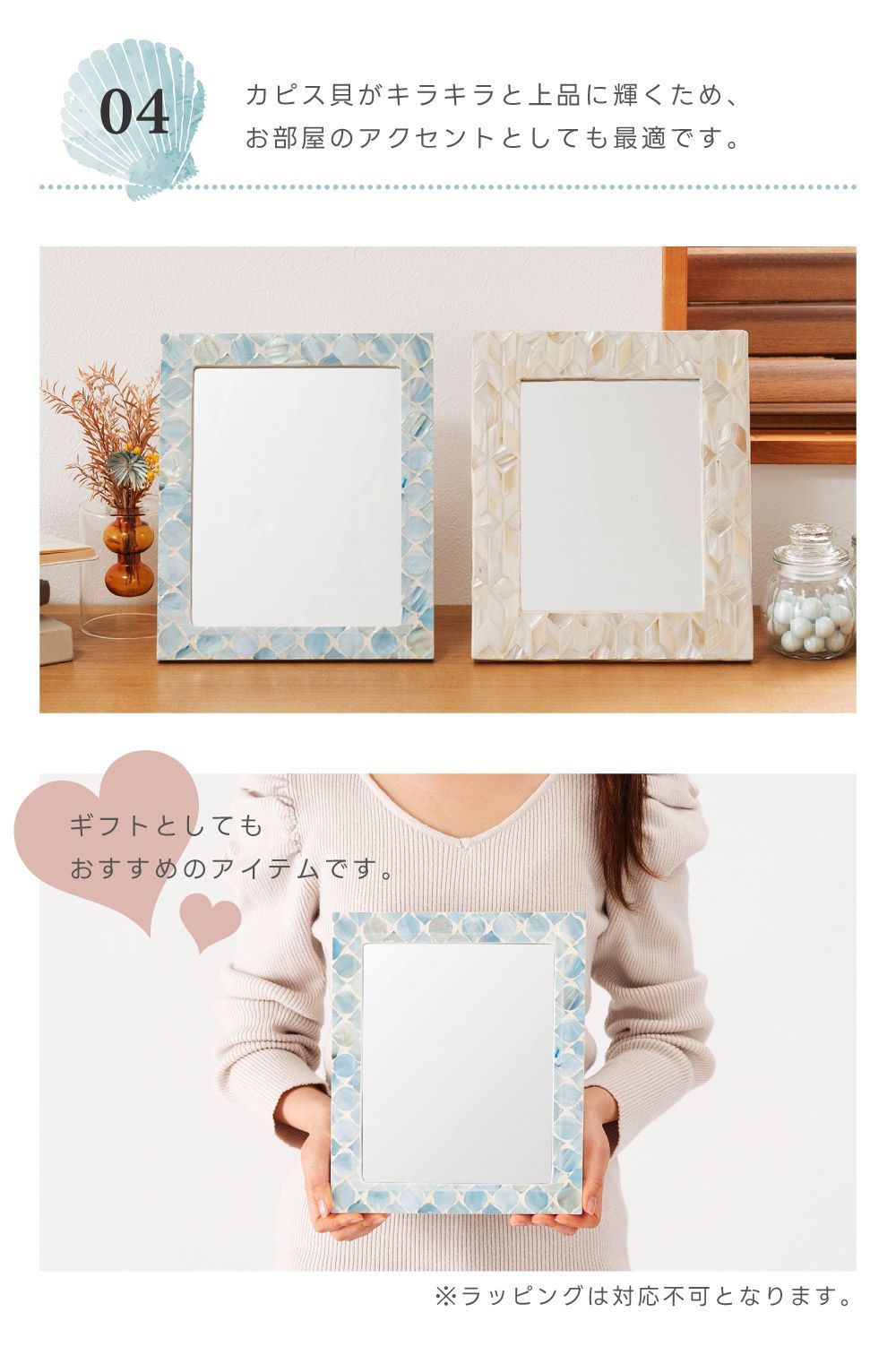 透明感と独特な光沢が演出する,マザーオブパールシェルインテリアシリーズ マザーオブパールはその名の通り真珠を育む貝で真珠のような虹色に輝く光沢が特徴です。