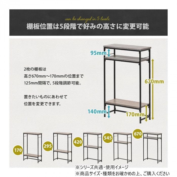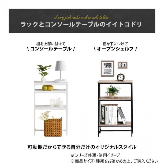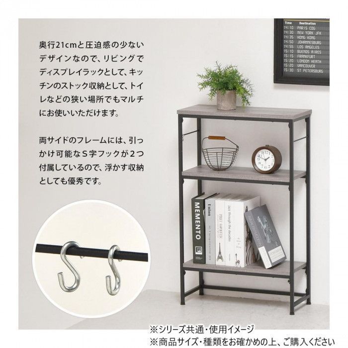 玄関や廊下など広さが限られたスペースも設置可能なスリムなラックタイプのコンソールテーブルです。シャープで圧迫感の無い落ち着いたデザインとしておりますのでリビング、キッチンカウンター下の収納、サニタリー収納等、設置場所を選ばないマルチなラックとしてご使用可能です。フレームの両サイドにはフックを引っ掛けることも可能で、フックが2つ付属しております。