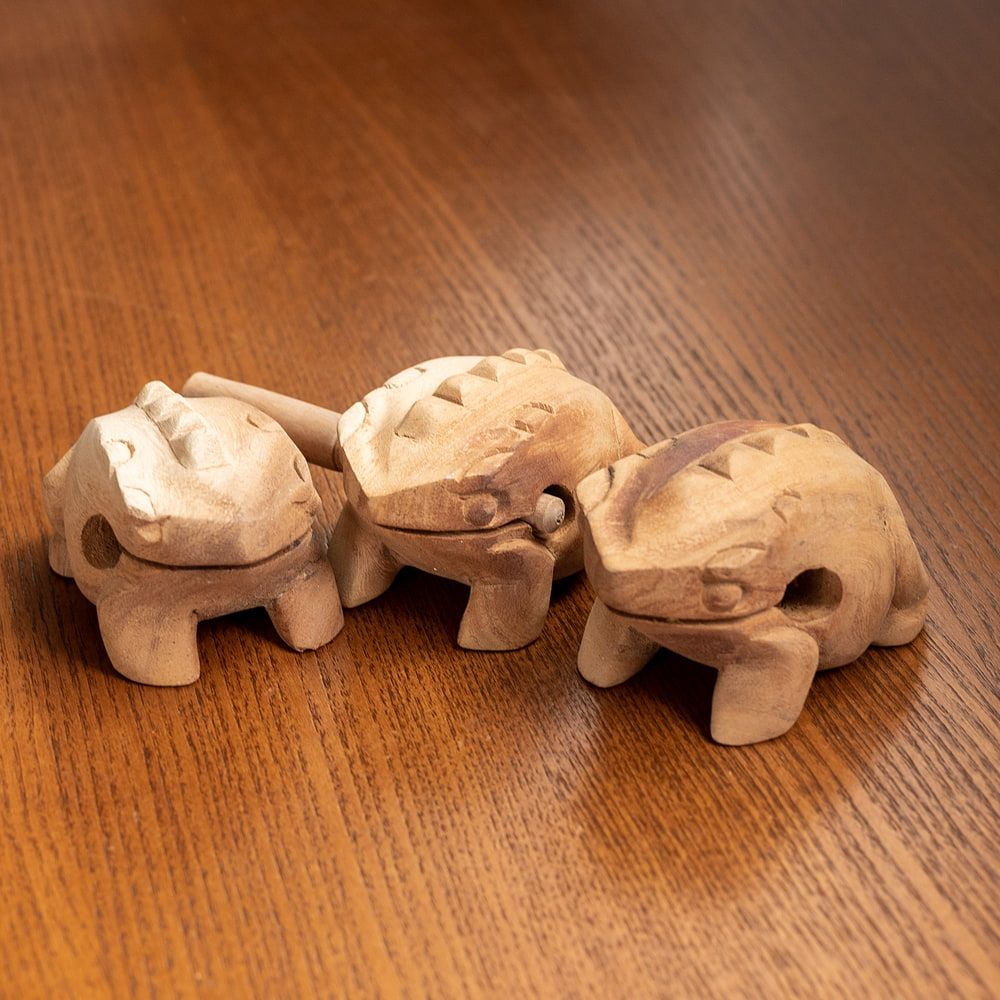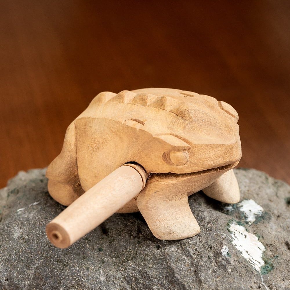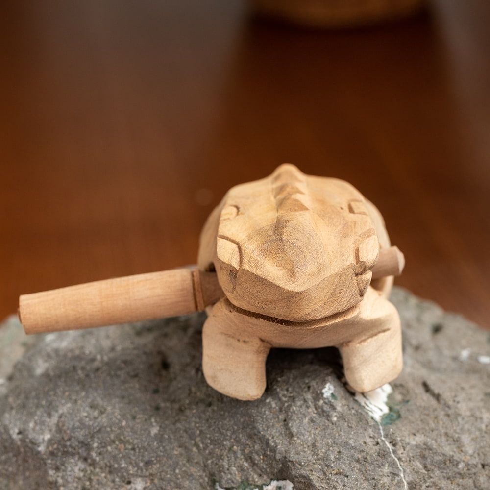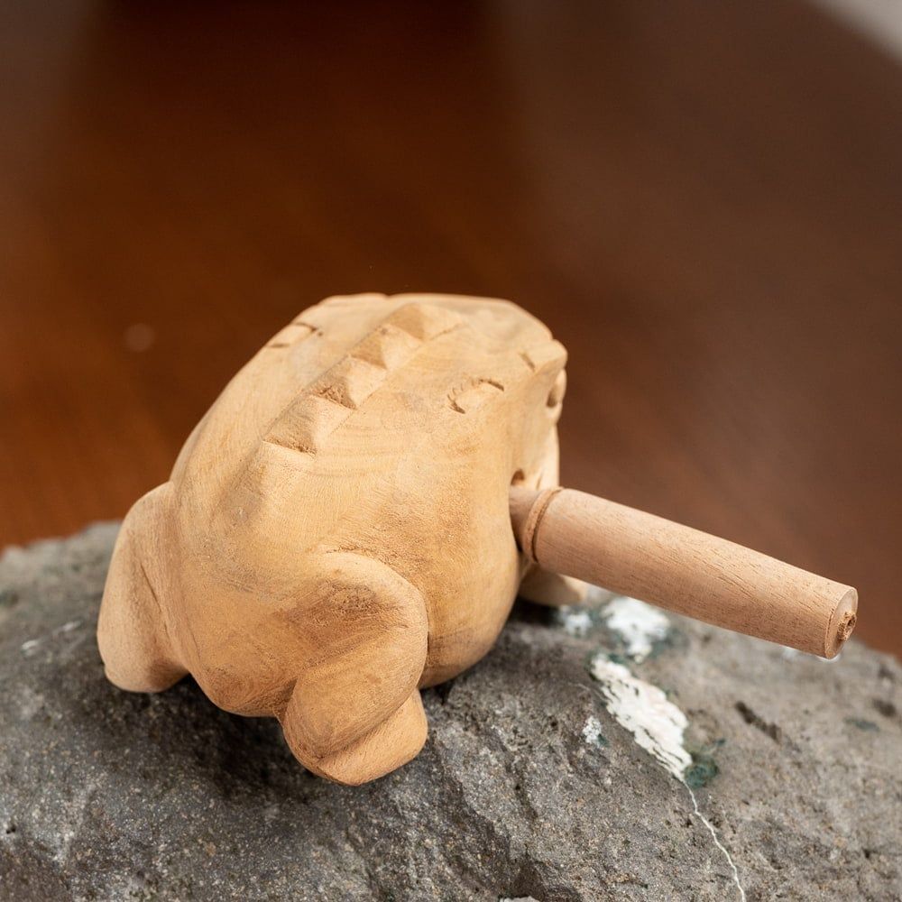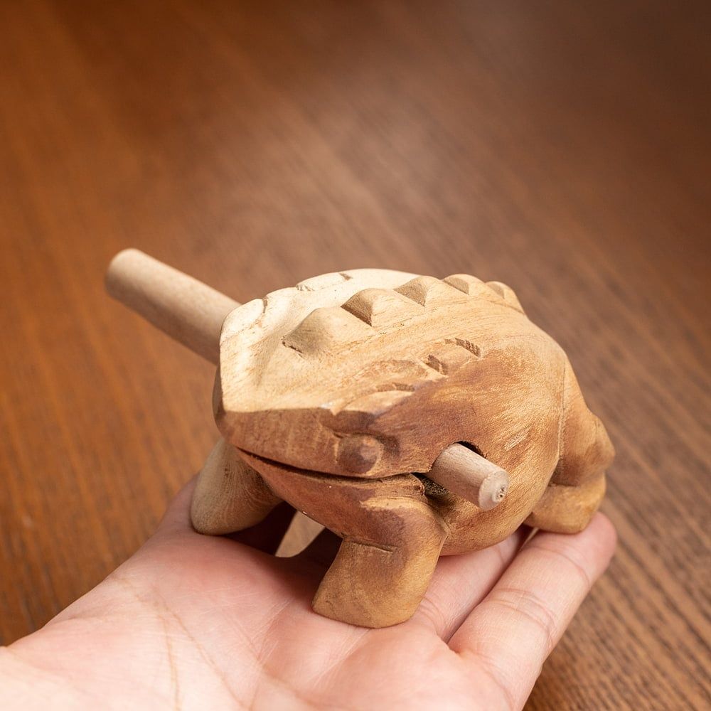 木目やナチュラルな質感が素敵なこの楽器、見た目も可愛いのでインテリアやプレゼントにもぴったりですね。複数をいっぺんに奏でれば蛙の合唱も楽しめますね。エスニックなアイテムとしてお部屋にひとつ、いかがでしょうか。