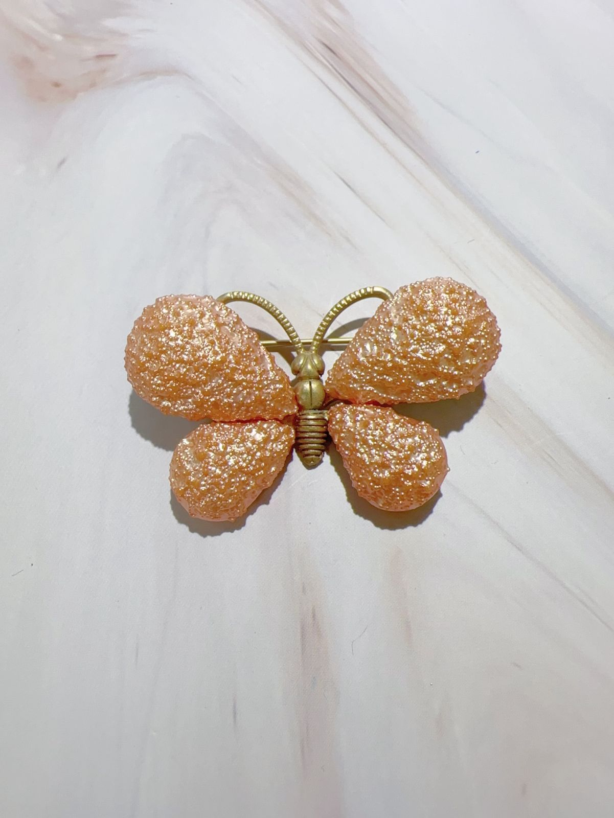 淡いオレンジゴールドカラーが華やかな、蝶モチーフのブローチです。