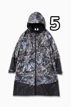 フード付きのブラックナイロンジャケット、ジッパーポケット付きで機能的。