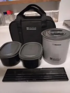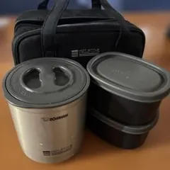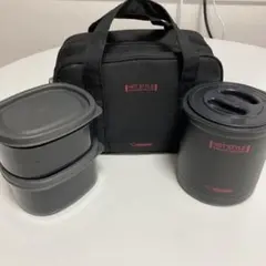 スープジャーとおにぎりケース、おかずケースがセットになっていて、付属のポーチは広げるとランチョンマットとしてお使い頂けます。