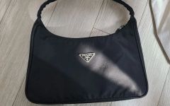 プラダのアイコンでもある「三角ロゴ」が際立つ、ブラックナイロンのショルダーバッグ。