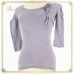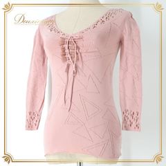 Chacottのピンク長袖トップス、裾にひも付きのデザイン。