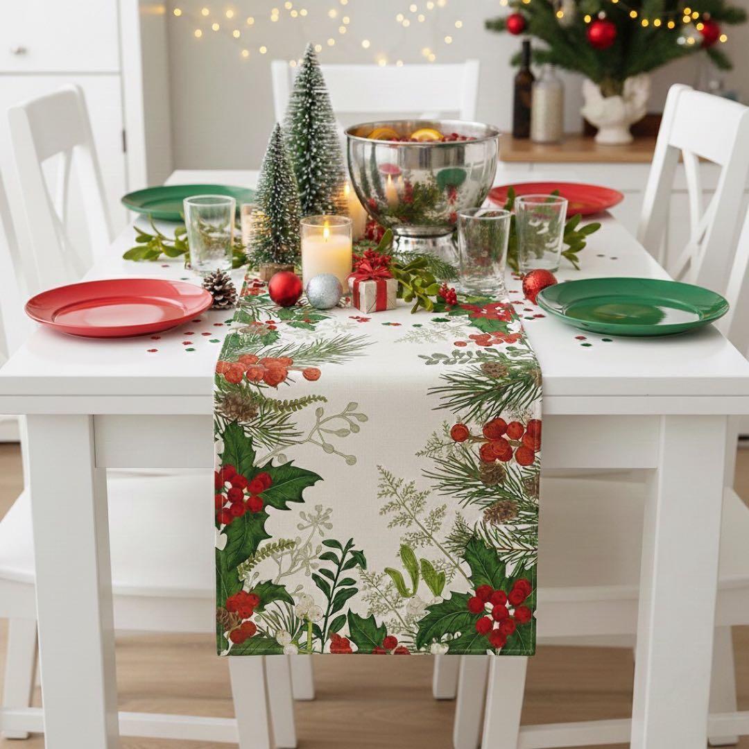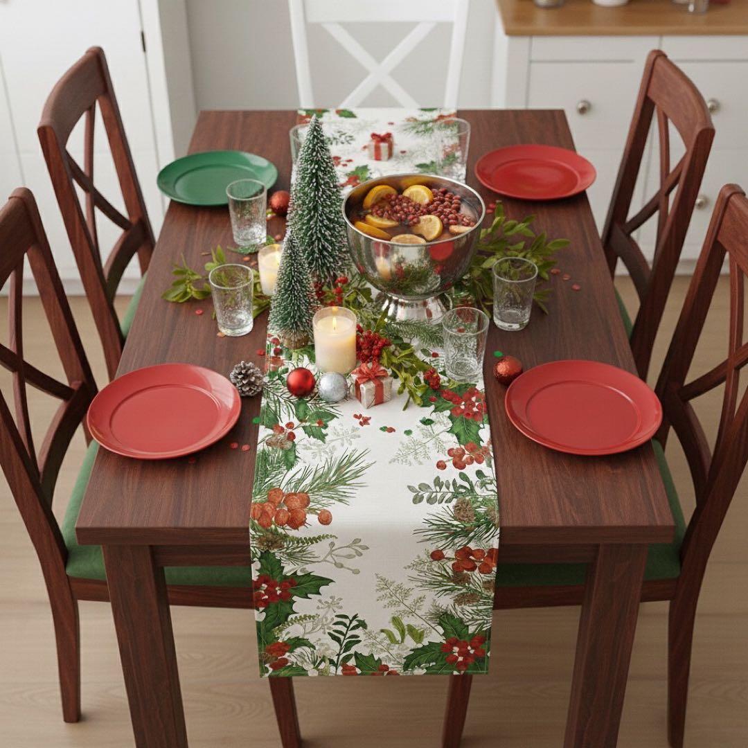 クリスマス ホリデーシーズン 植物柄 テーブルセンター