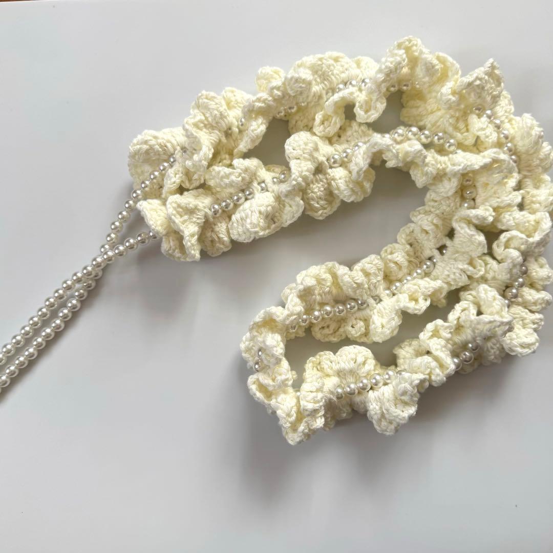 手編みのフリルスマホショルダーになります♥