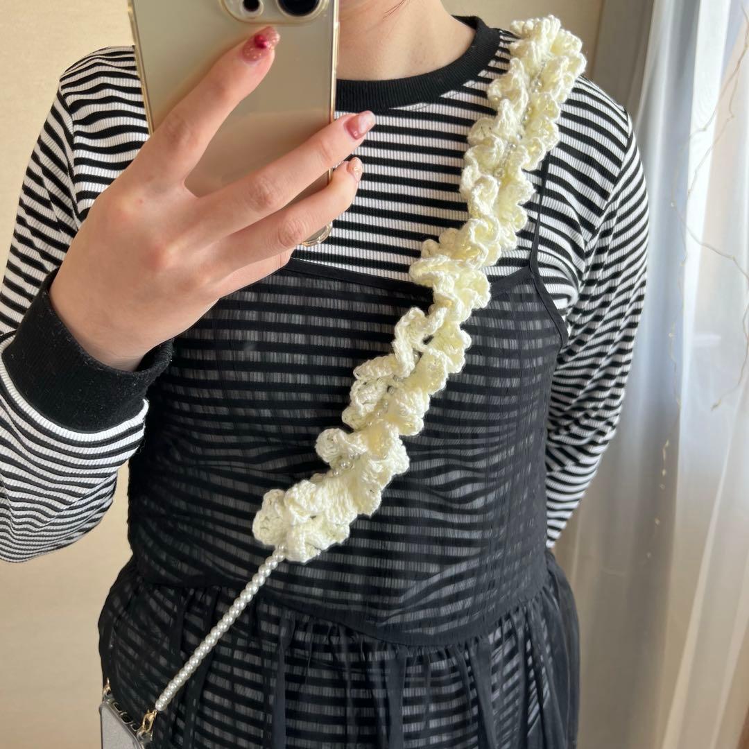 #ハンドメイド#編み#フリル#フリルストラップ#フリルスマホショルダー#スマホショルダー#編み物#かぎ針 #handmade #推し活 #推し事 #ホワイト #白 #手編み