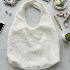 フラワーレースステッチで大人可愛いトートバッグです♪