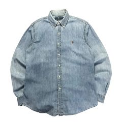 90s POLO RALPH LAUREN ポロ ラルフローレン 白タグ シャンブレー シャツ 猫目ボタン size L