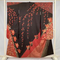 着丈149.4㎝、裄62㎝、袖丈68㎝、前幅23.4㎝、後幅29.4㎝くらいです。多少の誤差はお許しください。
