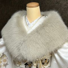 高品質のフォックスファーを使用した振袖ショール、4種類の留め具付きで多様なスタイルに対応。
