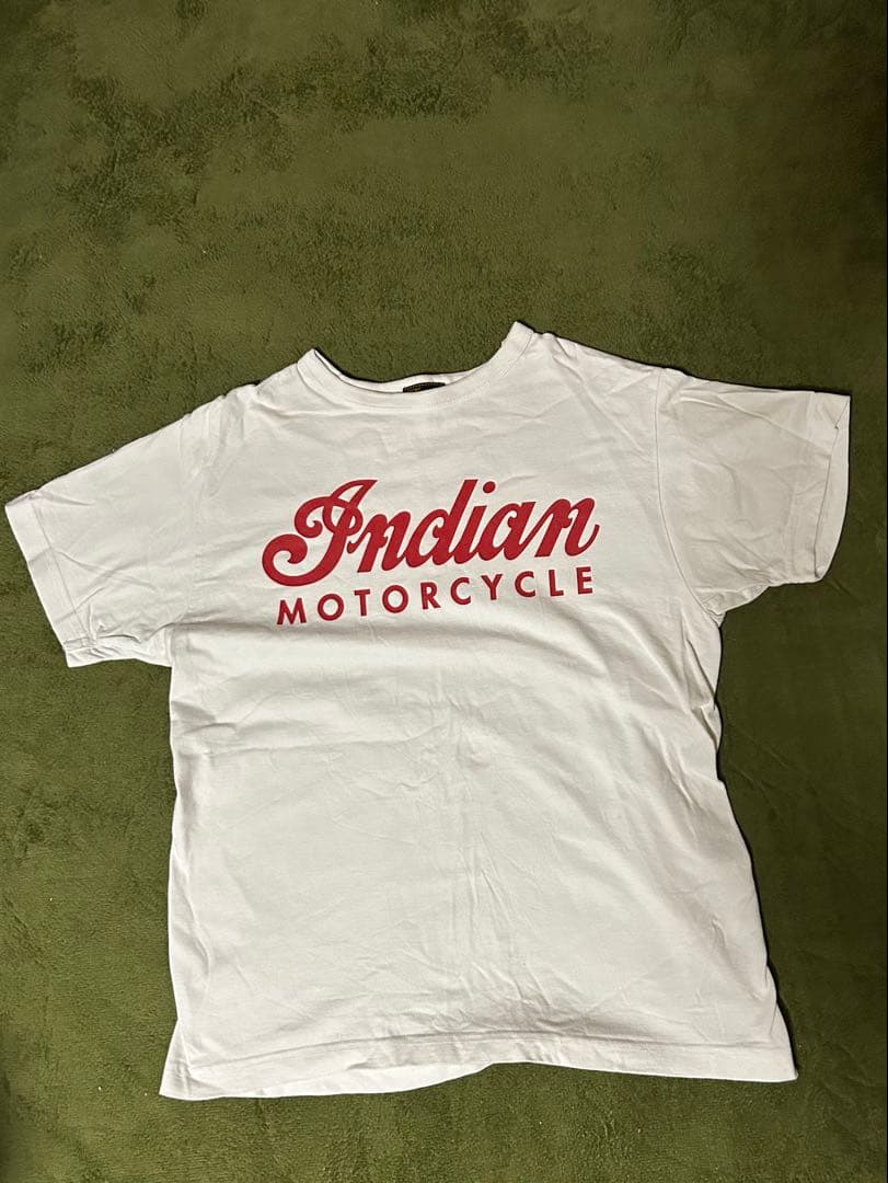 Indian Motorcycleロゴが特徴のホワイトTシャツ。