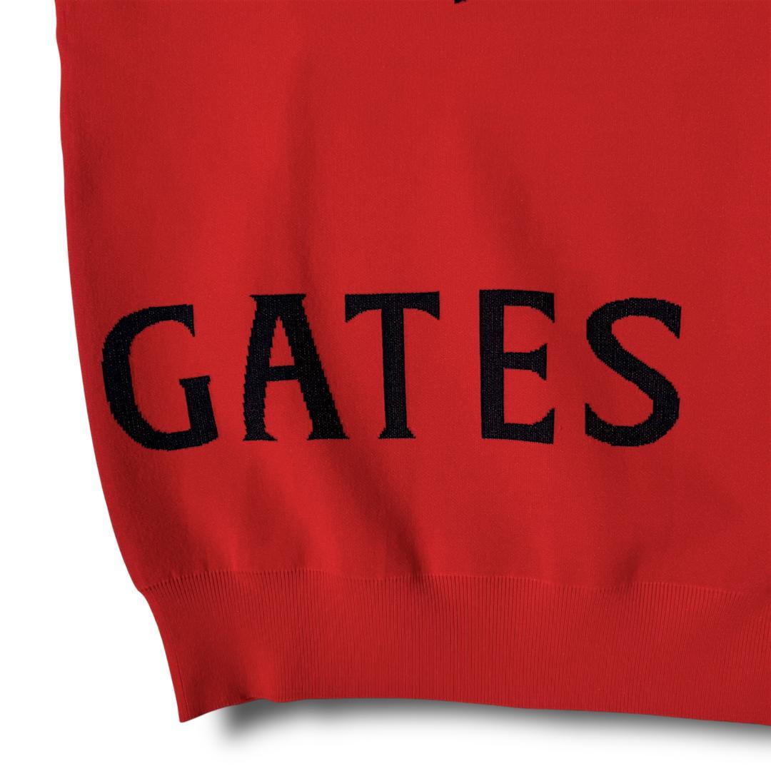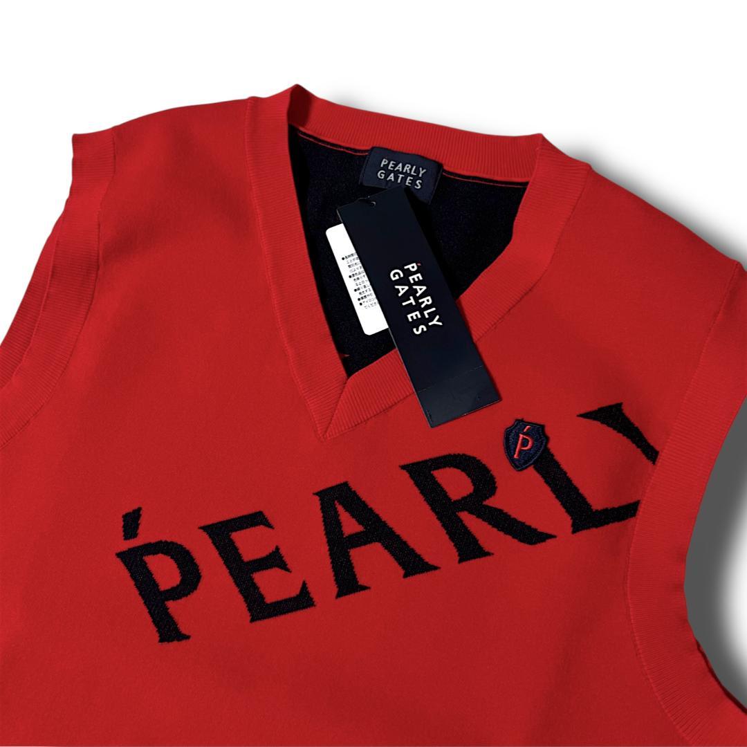 新品 PEARLY GATES パーリーゲイツ 定価2.5万 吸汗速乾 ローカルポリ メゾンビッグロゴ柄 ストレッチ Vネック ニット ゴルフベスト ゴルフウェア メンズ GOLF スポーツ レジャー 普段使い タウンユース カジュアル 春夏秋冬 通年使用可 レッド系 希少モデル 現品限り 7541 z3794