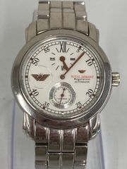 アイボリー文字盤の手巻き時計、金属製ブレスレット付き。