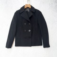 ウールのダークブラウンコート、サイドスリット付きでスタイリッシュ。