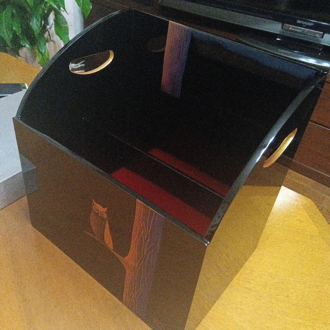 新しい彩 大生謹製 黒塗り フクロウデザイン漆器収納 マガジンラック