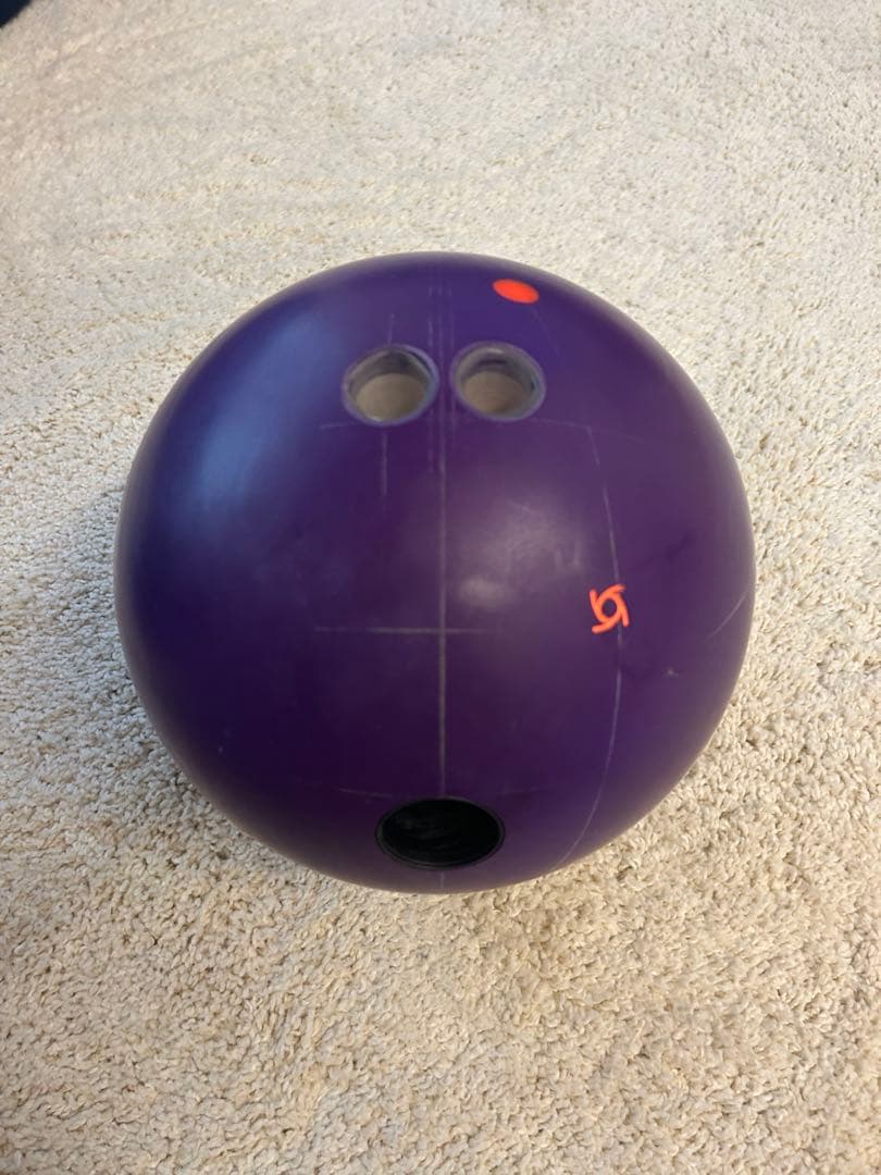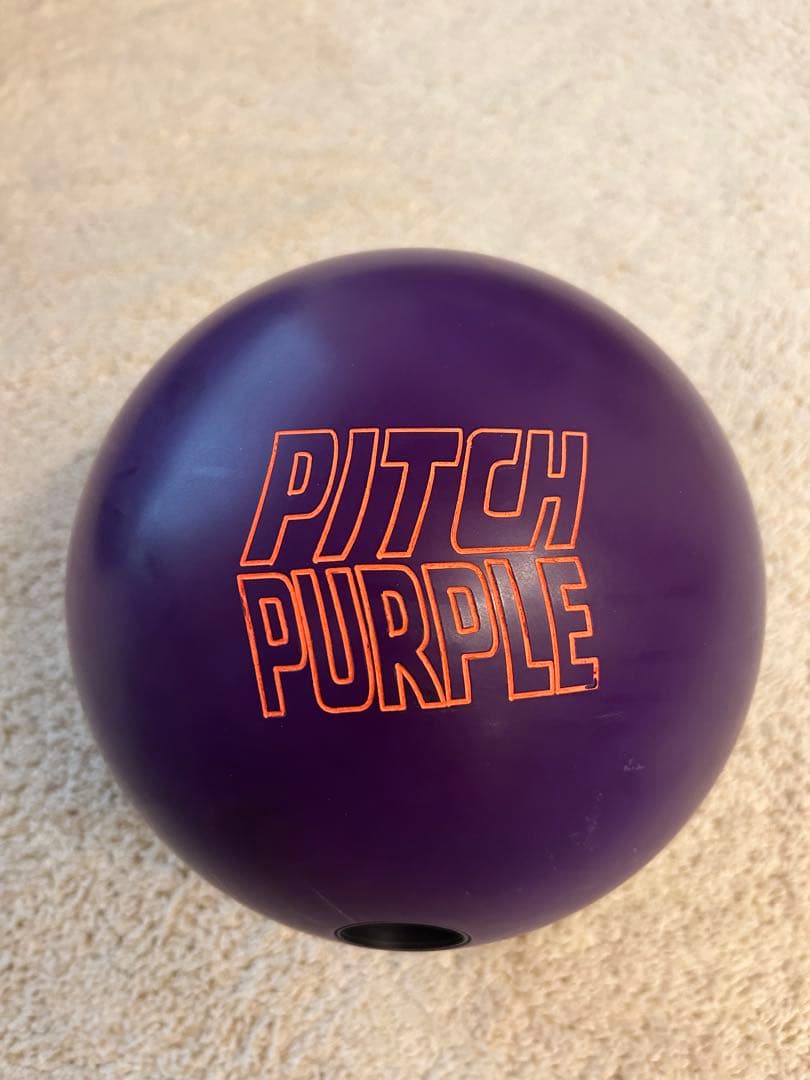 ドリルだけでほぼ未使用のパープルのボウリングボール、スムーズな表面仕上げで高いパフォーマンスを発揮。