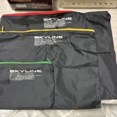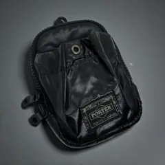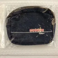 ナイロン製のフラップ式ポーチ、ピンクと青の配色で、ストラップ付き。