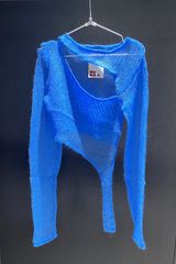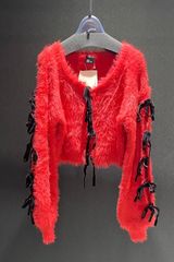 アンゴラ入りなのでとっても暖かく、Vネックがおしゃれです。スリーブはしっかりタイトで、モモンガスタイルのドルマンです。ふわふわでとっても可愛いです。