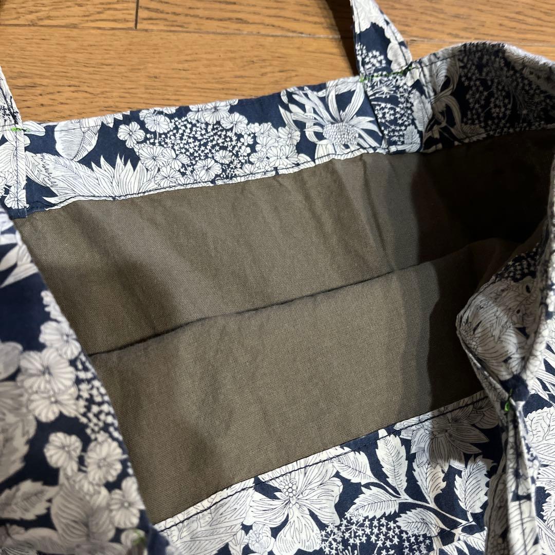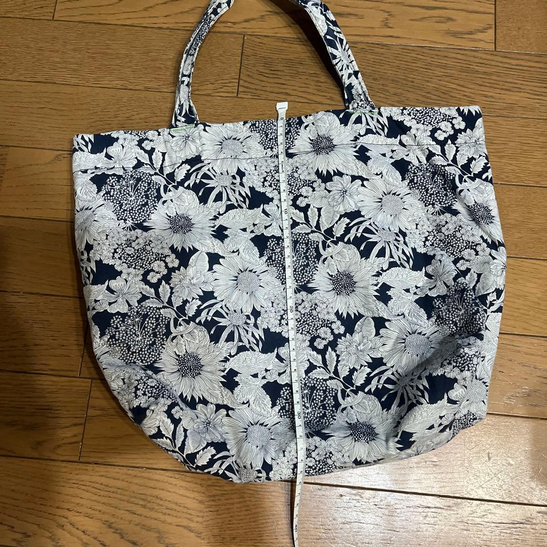 リバティ ハンドメイド 花柄トートバッグ ネイビー/ホワイト 中古