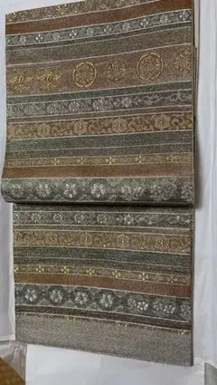 某大手リサイクル着物ショップで購入した袋帯2点です。金糸を使用した豪華な織りで、正絹、状態「大変よい」の物ですが、手持ちの着物と合わないので出品いたします。