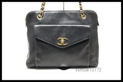 【正規品・美品】CHANEL シャネル キャビアスキン チェーンウォレット ネイビー