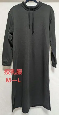フード付きクリーム色ロング丈授乳服マタニティ服