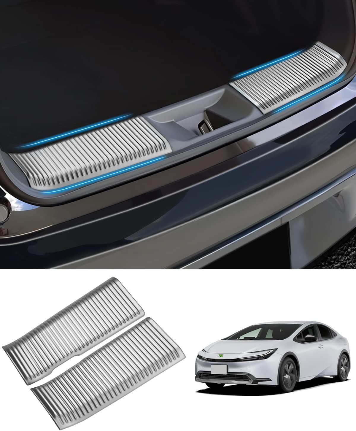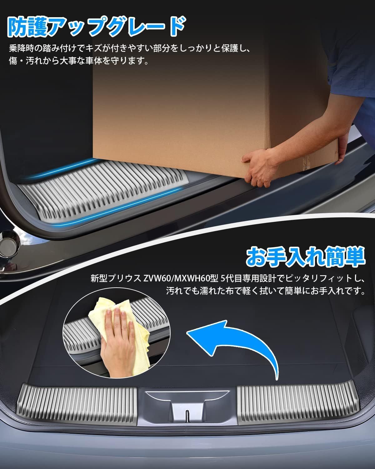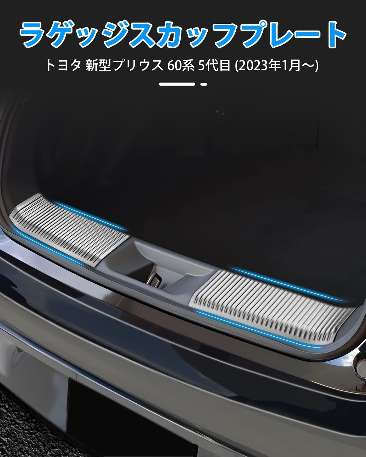 Auto Spec 新型プリウス 60系 リアバンパープロテクター リアバンパーステップガード スカッフプレート ラゲッジスカッフプレート ZVW60/MXWH60型 5代目 2023年-現行 リアステップガード リアバンパー サイドステップ 保護パーツ 汚れ防止 傷防止 専用設計 アクセサリー ステンレス リアセット2pcs 装着簡単 カスタムパーツ (新型プリウス 60系, シルバーヘアライン)
