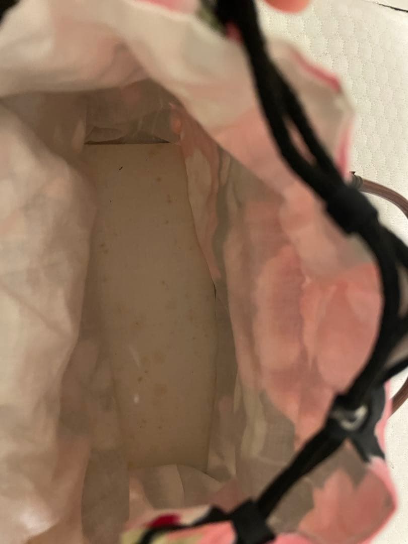 数年前に数回使用し、自宅保存しておりました。写真にもあるように、持ち手の部分がはげているのと、バッグの中にシミがあります。