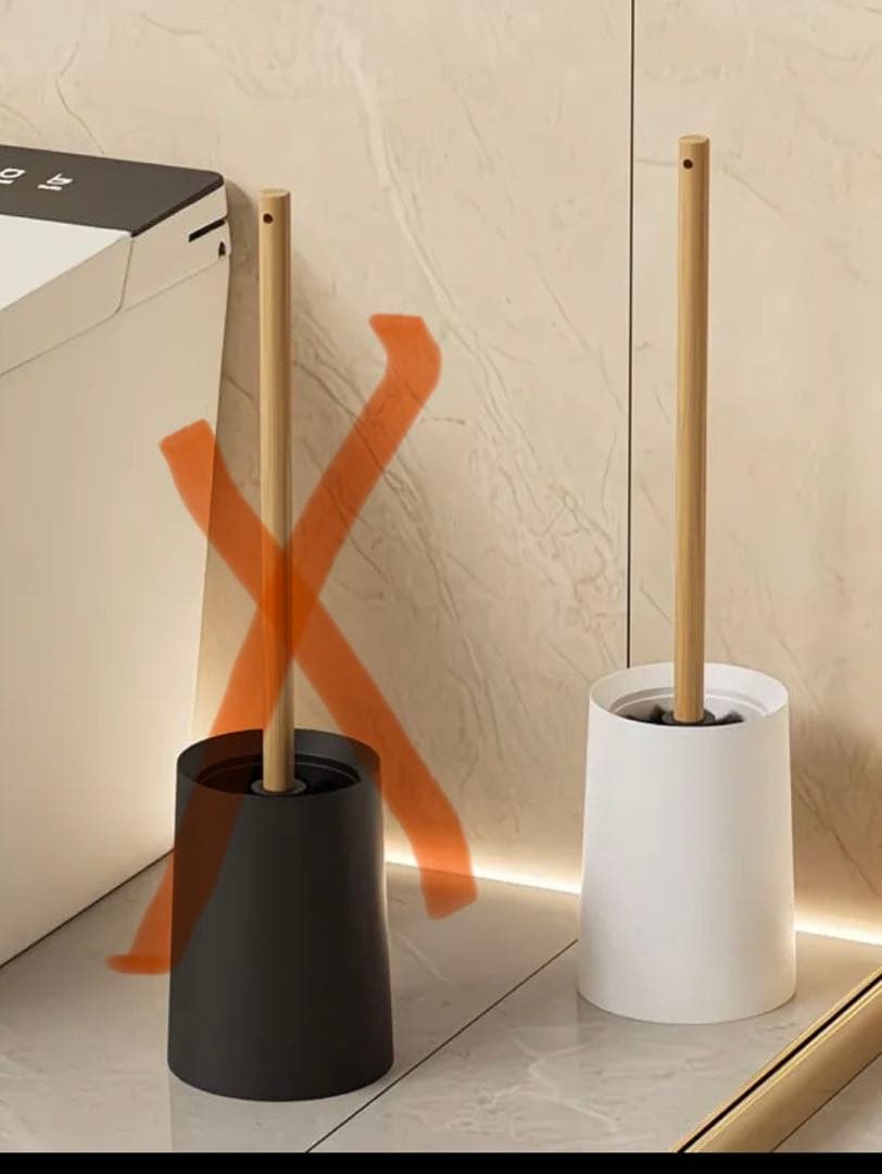 トイレブラシ 白 ホルダー付き 木製持ち手