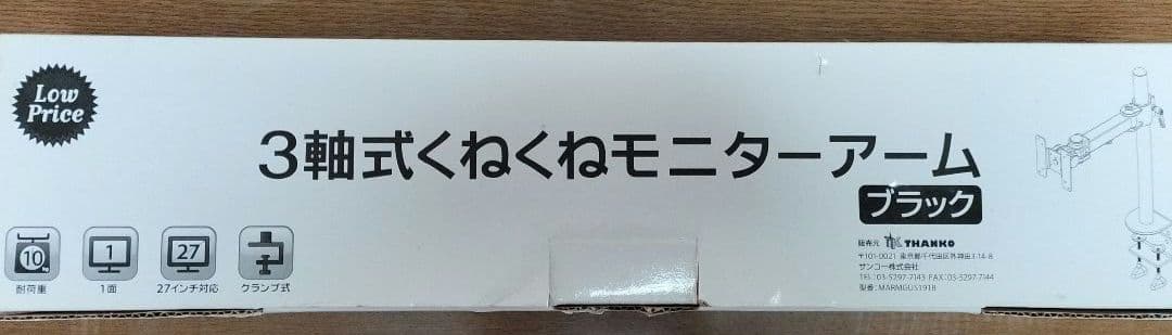 新品 THANKO 3軸式くねくねモニターアーム ブラック 黒 サンコー