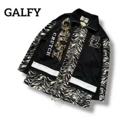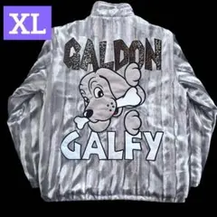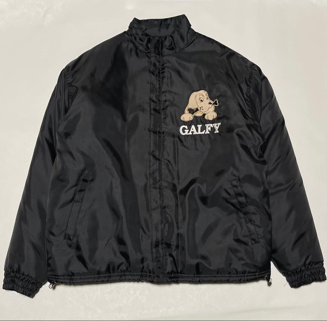 極美品 GALFY 中綿ジャケット ビッグロゴ ブラック ガルフィー ブルゾン ジャンパー デカロゴ 刺繍ロゴ ゴールド シルバー フリーサイズ ビッグシルエット オーバーサイズ ゆるダボ 裾ドローコード y2k RN175