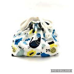ベージュと青の花柄ペイズリー模様のランチクロス。