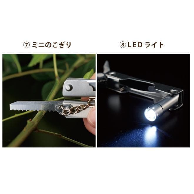折り畳み式 マルチツール ライト付き 8in1 防災 アウトドア LEDライト