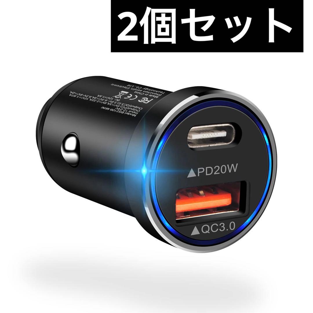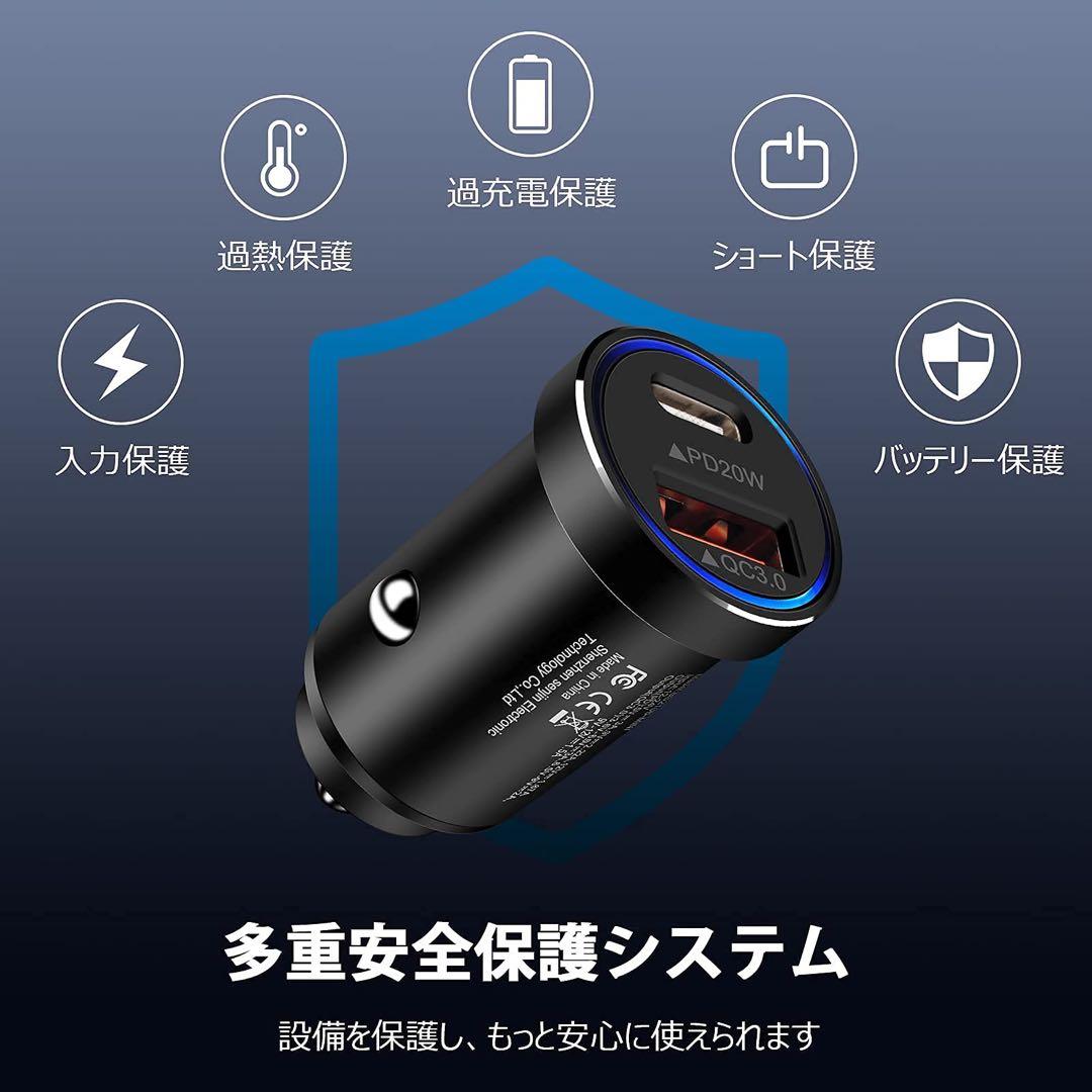 iPhone 16 シガーソケット usb 急速充電 カーチャージャー (38W/PD20W + QC18W) 車 充電器 iPoto usb-c 車載充電器 12V 24V ソケット [超小型・全金属製] シュガーソケット iPhone 15 Android IQOS対応 ブラック