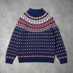 USA製 90s lans'end ランズエンド 肉厚 Vネック ニット セーター 赤 レッド