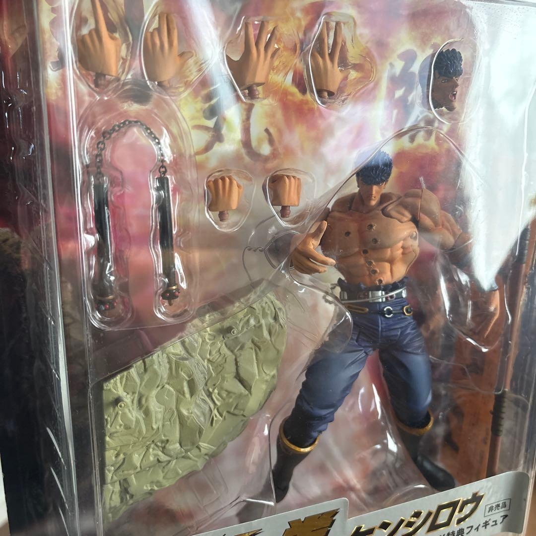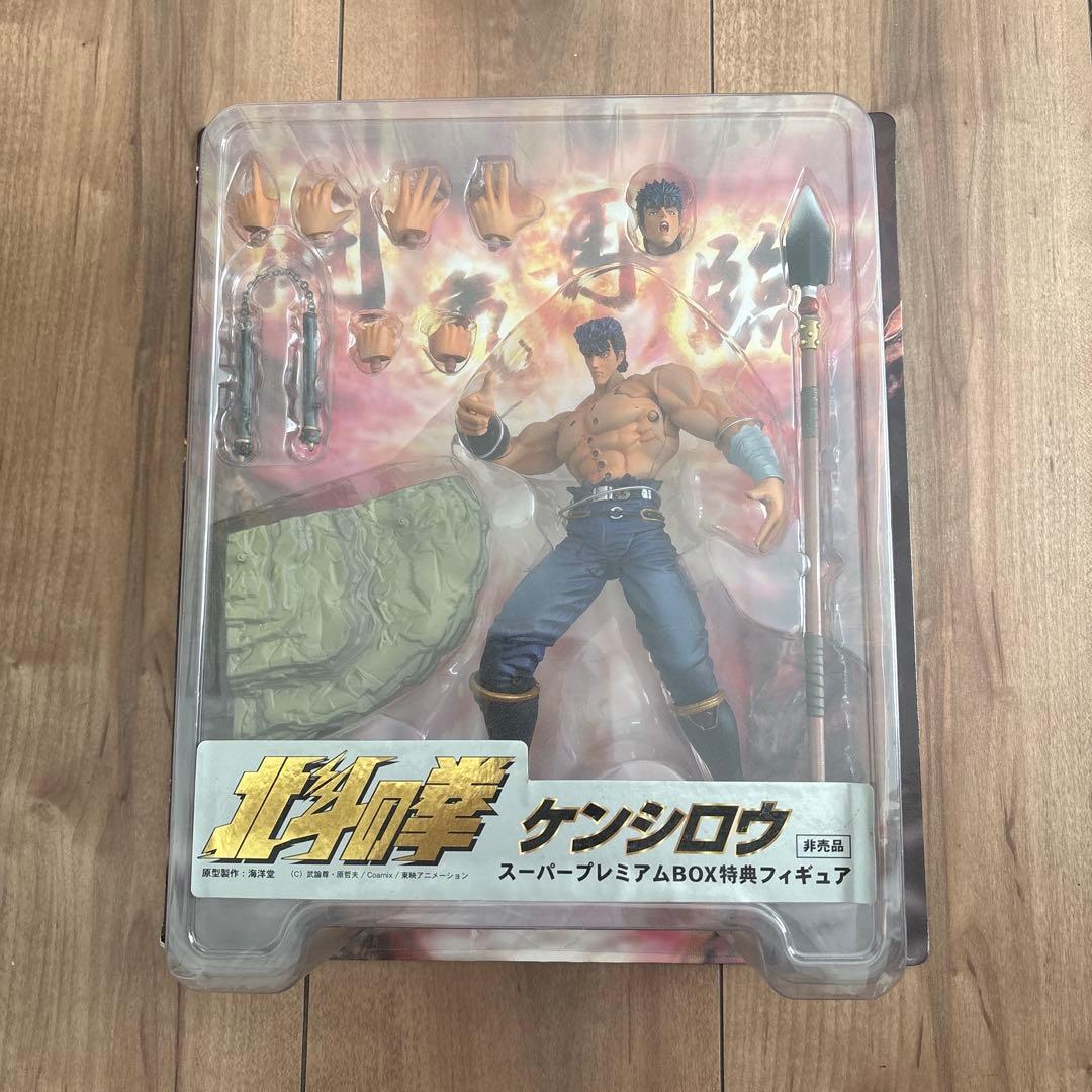 ケンシロウのスーパープレミアムBOXフィギュア、交換用手首と武器付き。