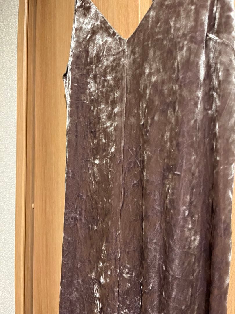ベージュ ブラウン ベルベット キャミソール ロングワンピース