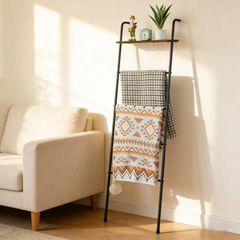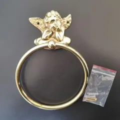 オフホワイトの木製タオル掛け、華やかな花模様付き。