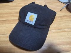 ブラウンのCarharttキャップ、ロゴ刺繍入り。