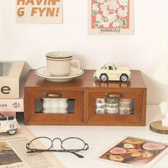 デザインがとても可愛く引き出し部分が斜めカットの木で写真などが入ります!