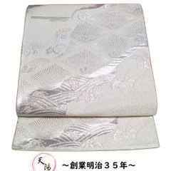 鳳凰や唐花模様、ドット状の青海波が細やかに織り出された袋帯です。