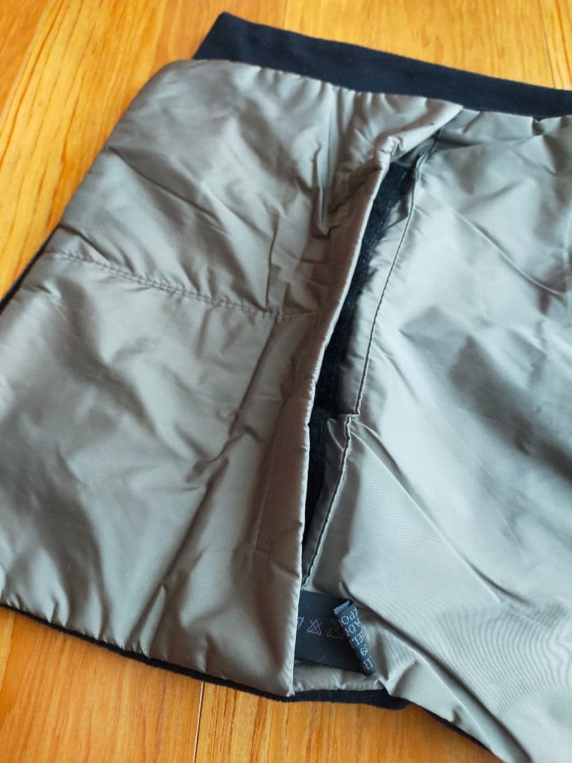 片側にマジックテープ付きのポケットあり。中心が縫われていてポケット2つです。