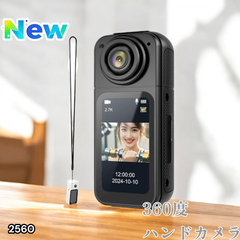 コンパクトなアクションカメラで、32GBのメモリカードが付属。操作ボタンがあり、ネックストラップ付きで持ち運びに便利。