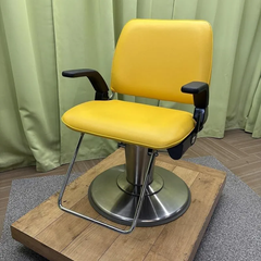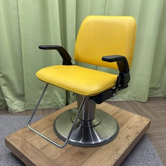リクライニング機能付きの理容椅子、合成皮革製で調整可能なアームレスト。2台。