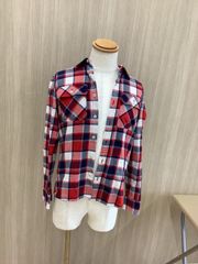 ブラック・パープルのチェック柄が特徴的な長袖シャツ。