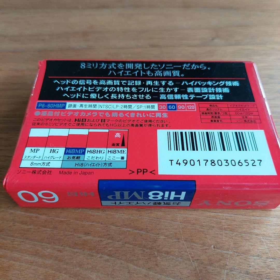 SONYのHi8MPフィルム、8mmタイプ、60分録画可能。