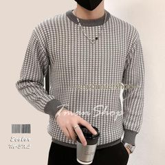【韓国メンズファッション】人気 ニットVネックチェック柄セーター バイカラー