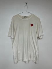 グレーのCOMME des GARÇONS POCKET Tシャツ、アート風デザインとポケット付き。