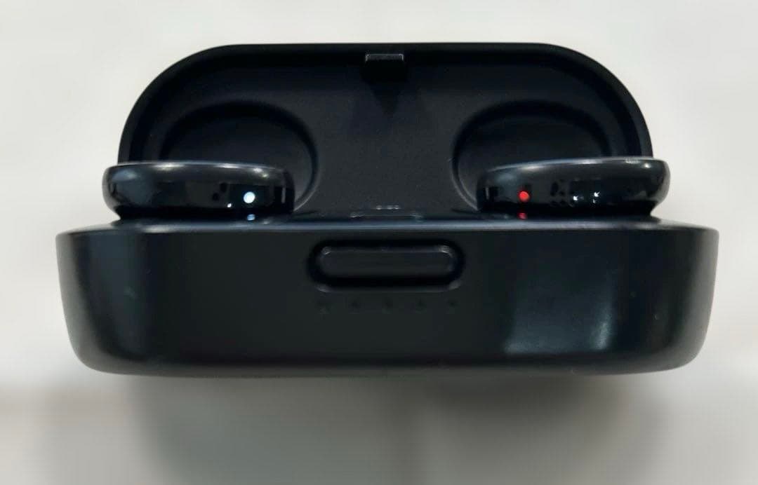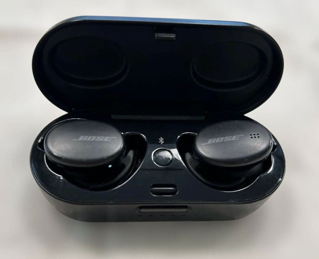 BOSEのワイヤレスイヤホン、ブラック、充電ケース付き。